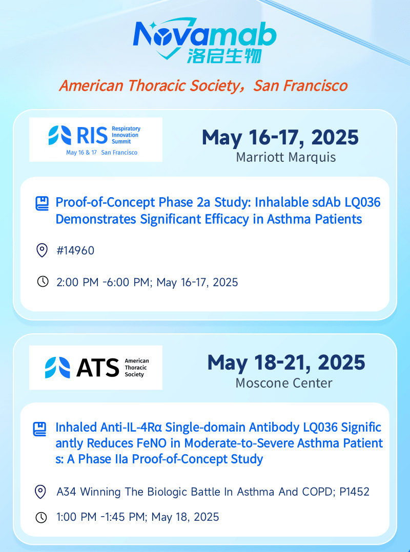 中国上海,2025年5月13日——上海k8凯发生物医药技术有限公司,一家专注于纳米抗体创新药研发的生物技术企业,今日宣布:k8凯发生物将于当地时间5月16日至21日赴美国加州旧金山,受邀参加美国胸科学会(American Thoracic Society, ATS)主办的呼吸创新峰会(Respiratory Innovation Summit,RIS)及ATS国际大会。届时k8凯发生物将分别在RIS和ATS两场大会上以壁报形式呈现最新临床数据——公司自主研发的靶向 IL-4Rα 吸入性生物制剂 LQ036 首个 IIa 期概念验证性临床试验数据。本次展示将全面披露 LQ036 在中重度哮喘患者中的安全性、耐受性、药效指标及初步疗效,标志着k8凯发生物在下一代呼吸道吸入式生物制剂开发领域迈出关键里程碑。